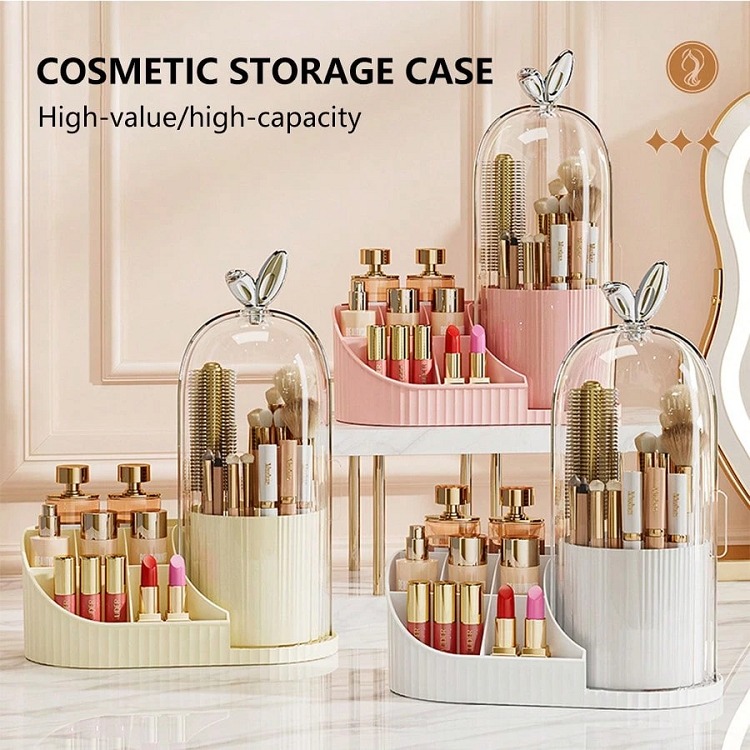 1pc Desktop Rotating Makeup Brush Organizer Lipstick Eyebrow Pencil Holder Pencil Holder Dustproof Dresser Cosmetic Storage Case,For Holiday Beach, Bathroom Collection, Bedroom Collection, Large Capacity….