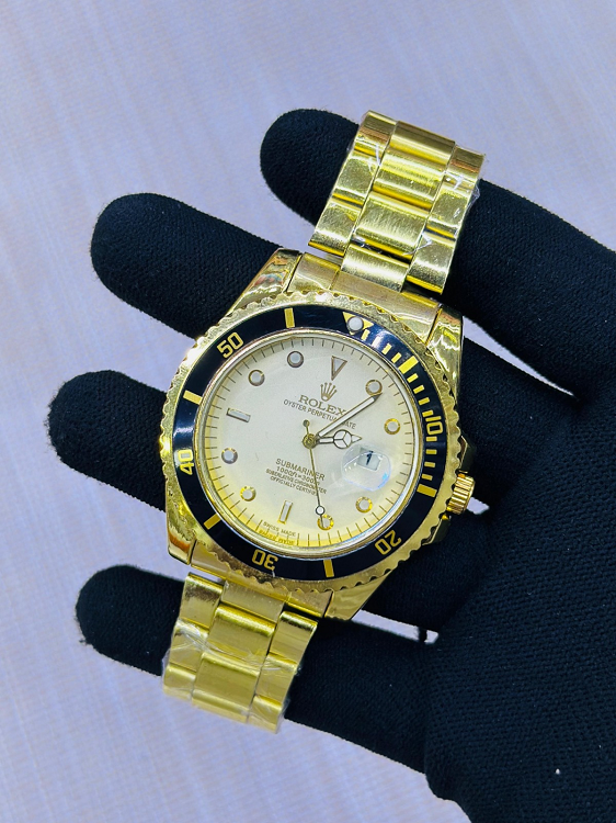 Luxury Submariner Date Full Gold & White Dial Quartz Casual Design Stainless Steel Military Waterproof Wrist Watch For Men